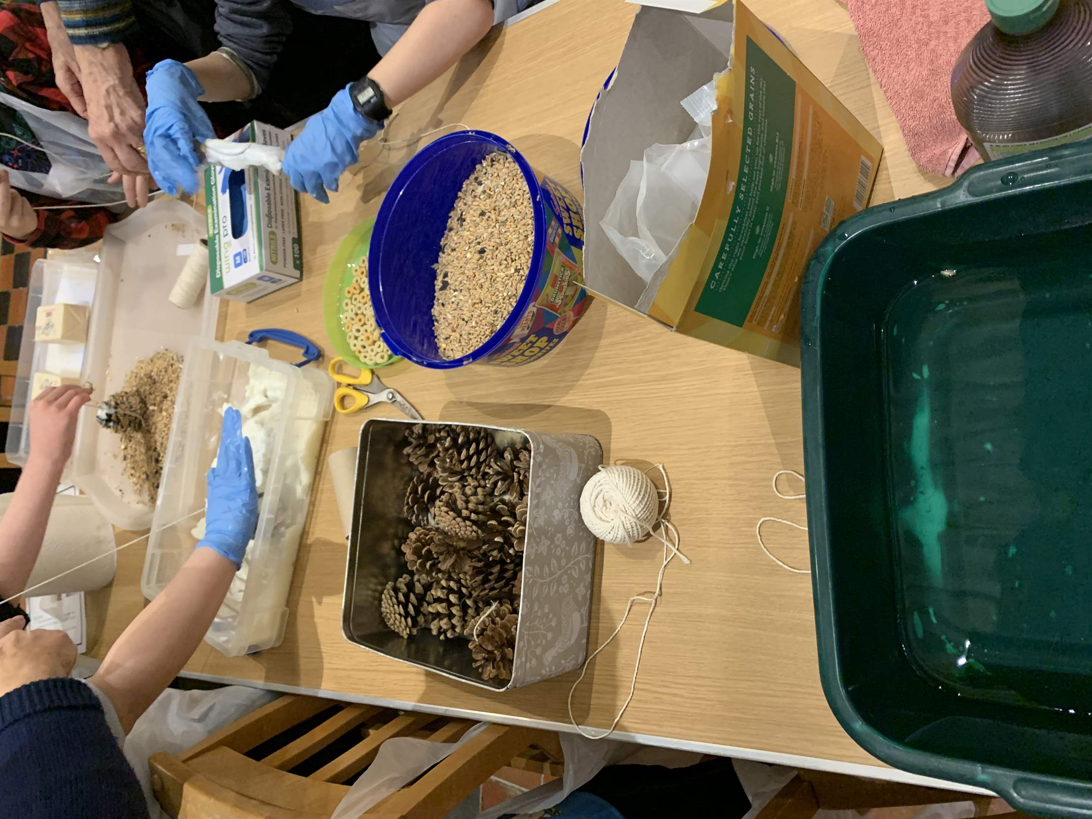 Making the bird seed feeders